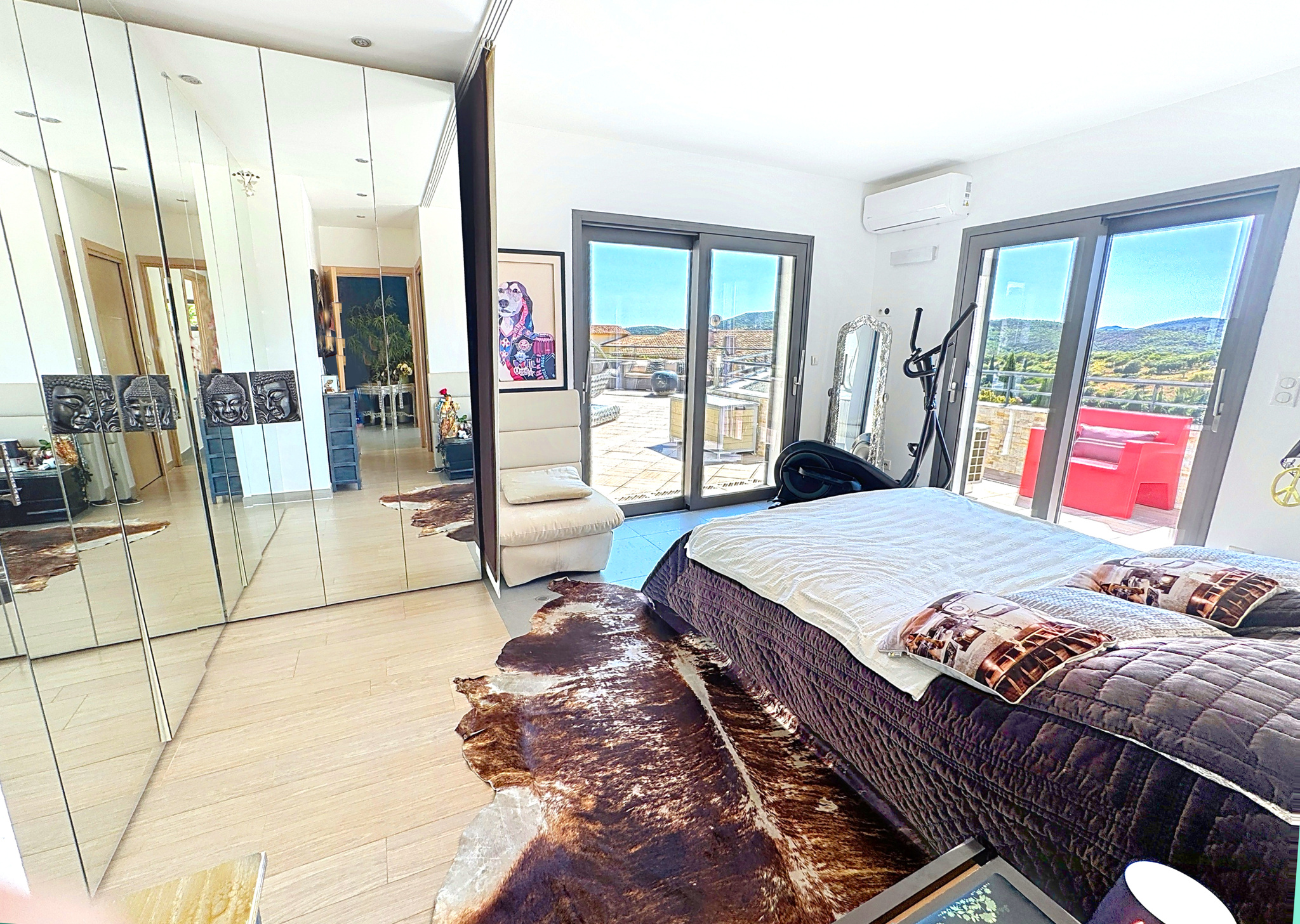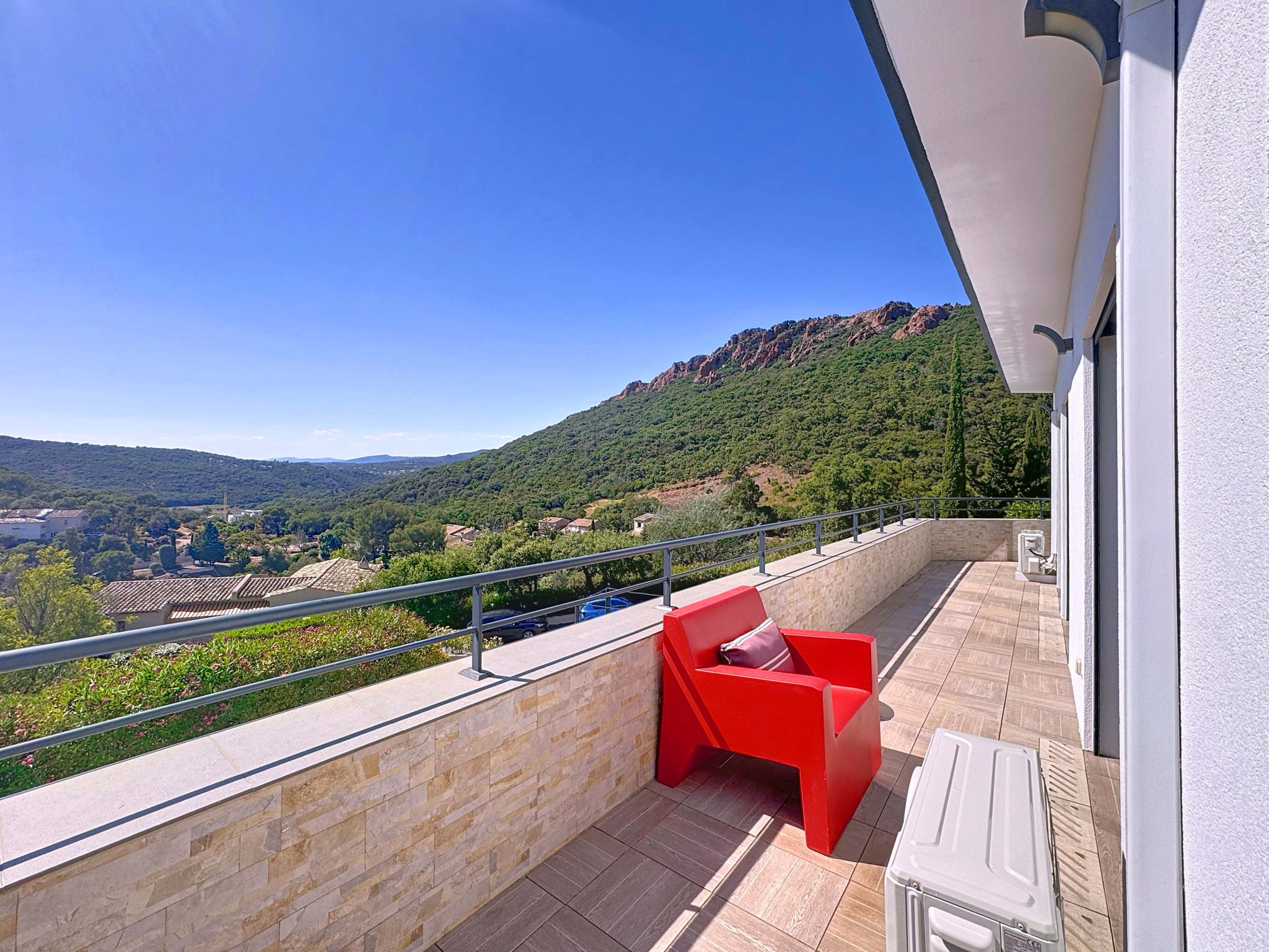 Vue panoramique sur l’Estérel Dans un domaine privé et sécurisé, découvrez cette superbe villa contemporaine de 161 m² habitables (190 m² au total), édifiée sur un terrain paysagé de 800 m² . Réalisée par une architecte, cette propriété récente offre des volumes lumineux, une vue exceptionnelle sur l’Estérel et un confort absolu grâce à ses prestations haut de gamme : chauffage au sol reversible wifi, climatisation réversible wifi , aspiration centralisée, volets motorisés et centralisés, panneaux solaires, alarme, caméra, puits canadien, double flux, arrosage automatique, réserve d'eau et isolation de qualité (DPE A). La maison comprend un vaste séjour avec cheminée éthanol, une cuisine équipée, 3 suites parentales avec dressings et salles d’eau wc, un bureau (ou 4ᵉ chambre possible), wc ind invités ,de grandes terrasses et 4 stationnements. À seulement 1,5 km des plages, du centre et de la gare d’Agay, elle allie modernité, calme et élégance. Contact : Nathalie DARMON – NATIMMO – 06 99 97 75 75 Esimation à été évalué à 1 700 000 € vendue à 1 390 000€