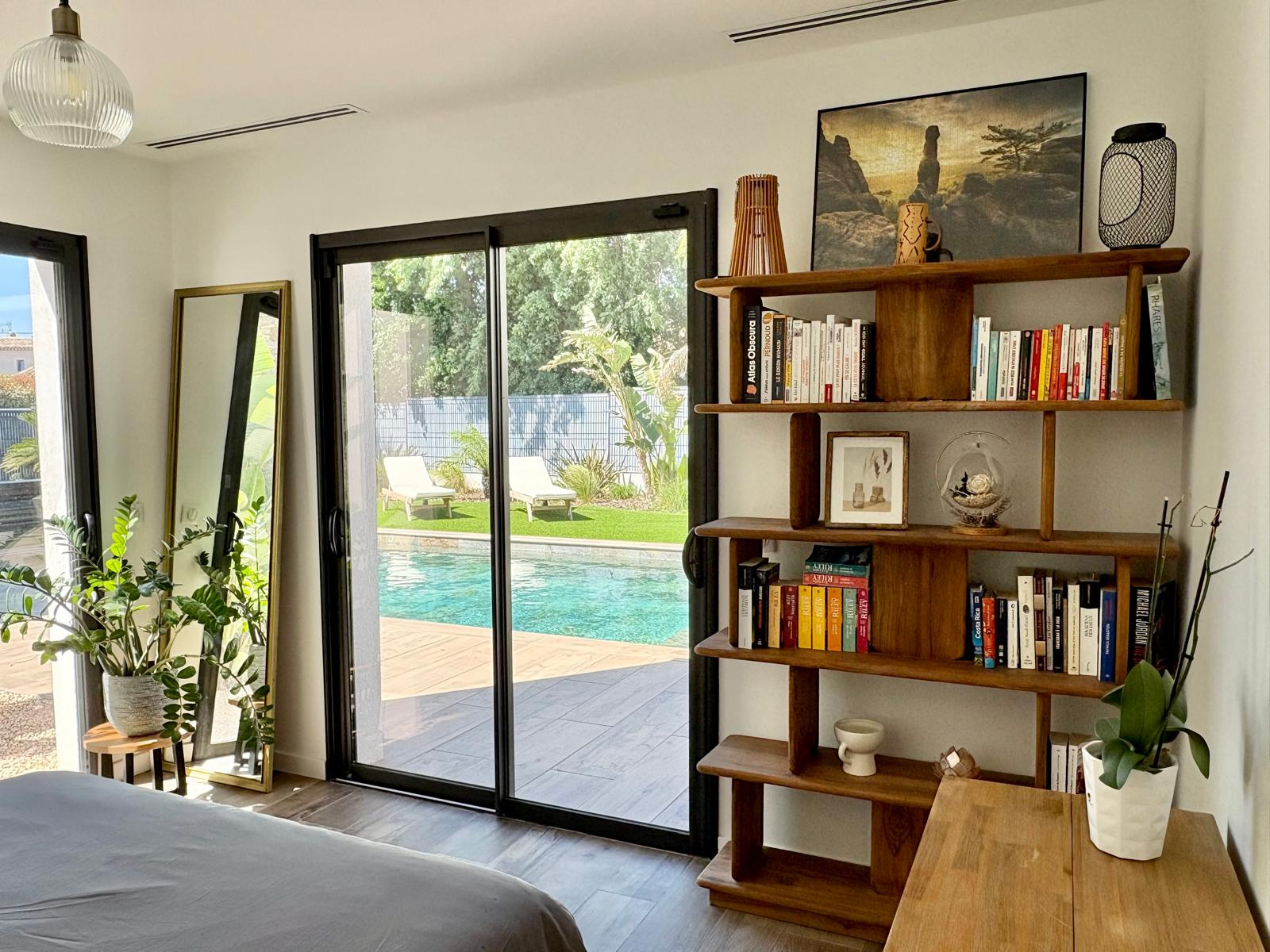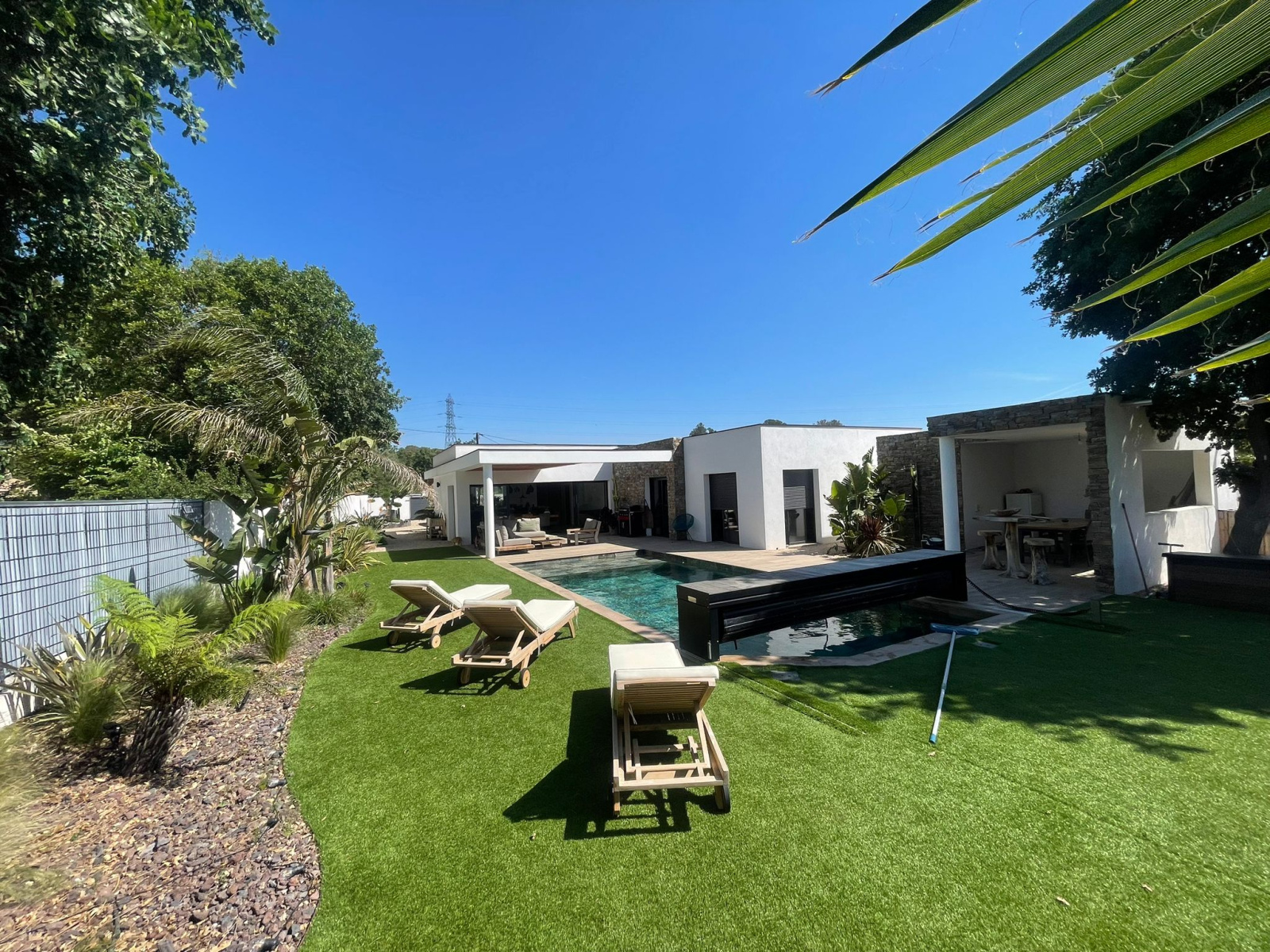 À l’extérieur, laissez-vous séduire par un véritable havre de paix : jardin tropical, terrain de boules, et une très belle piscine traditionnelle au sel de 9,5 m x 4,5 m, équipée d’un volet roulant électrique pour plus de sécurité et de confort.
